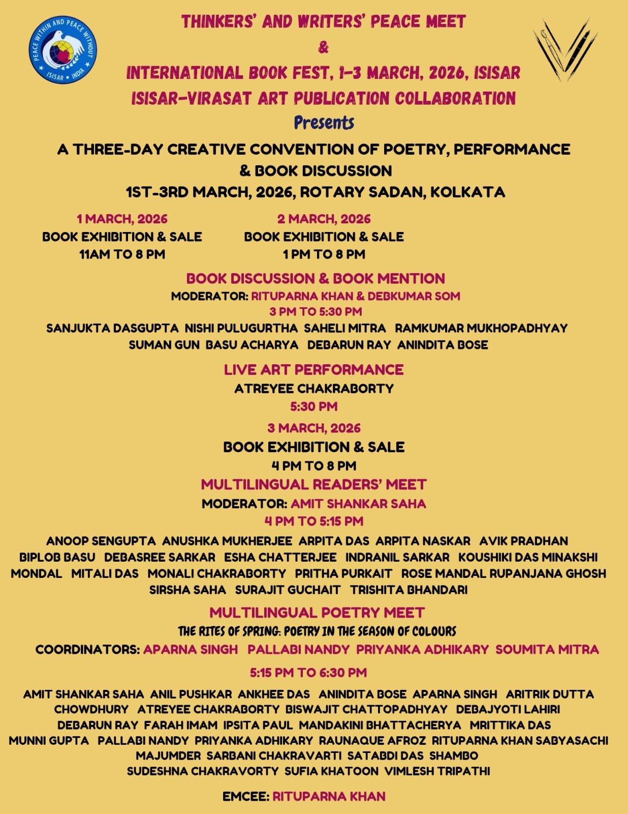 A Three-Day Creative Convention of Poetry, Performance and Book Discussion
